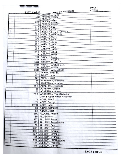 Some library searches were fruitless - no obituaries in the newspaper microfilm reels, except for a brief mention of Whitfield Abbott's funeral in the Bergen County Democrat: